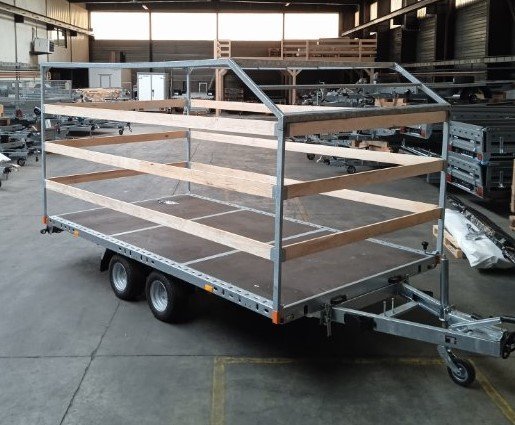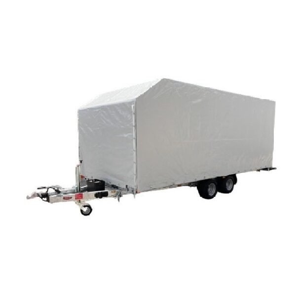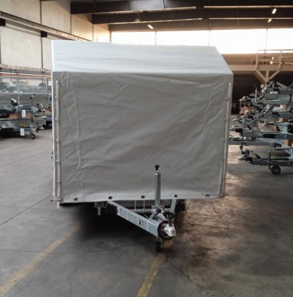 Bâche haute ouvrable sur les 4 côtés hauteur 1,80m avec pan cassé sur l’avant pour remorque GRAVITY longueur 4,00m