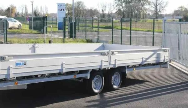 La remorque plateau Hulco Medax mesure 611 cm de longueur et 223 cm de largeur. Ces dimensions généreuses permettent de transporter des charges imposantes sans difficulté. Le plateau est conçu pour résister aux conditions les plus rudes. Grâce à sa structure renforcée, il supporte des charges allant jusqu’à 3500 kg selon les modèles. Les bords relevés assurent une sécurité accrue lors du transport. De plus, la hauteur du plateau facilite le chargement et le déchargement. Enfin, la finition anti-corrosion prolonge la durée de vie de la remorque.