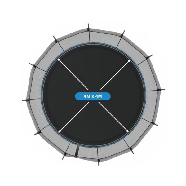 La surface de saut de notre trampoline Jumbo Rond R132 de 4m est équivalente à un trampoline de 4,6 m avec ressorts