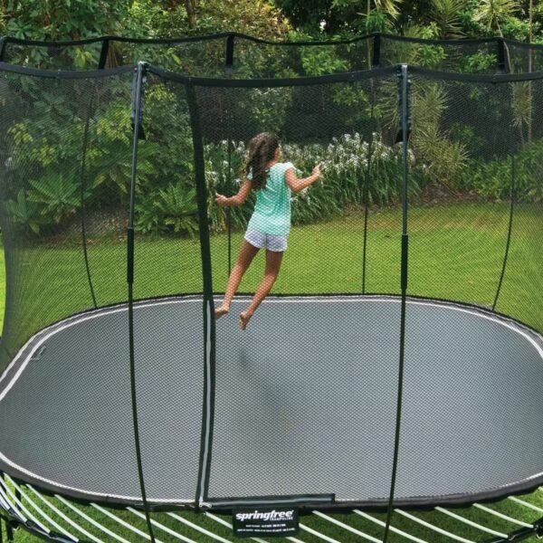 Fabriqué avec des matériaux de qualité supérieure, le Springfree S113 est conçu pour résister à une utilisation intense et prolongée. Le cadre est en acier galvanisé, protégé contre la rouille et les dégradations liées aux intempéries. Ce trampoline convient à un usage extérieur tout au long de l’année, offrant ainsi une solution fiable pour les amateurs de plein air.
