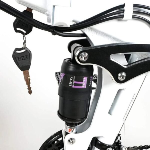 - Équipé d’une suspension avant pour absorber les chocs et offrir une conduite confortable sur des terrains accidentés.